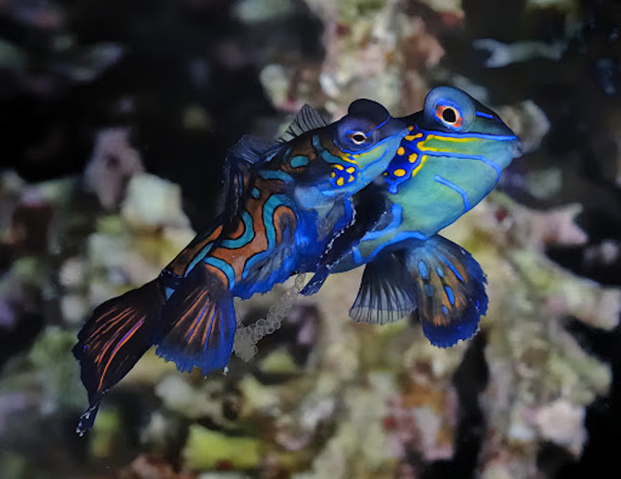 Selon des études datant de 1995, la couleur bleue qui caractérise le poisson-mandarin est due à la présence d’un chromatophore bleu au niveau de ses téguments.