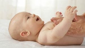 C’est à vous de décider si votre enfant ne porte pas de couche, mais il peut être utile d’au moins détacher sa couche lorsque vous lui massez le ventre.