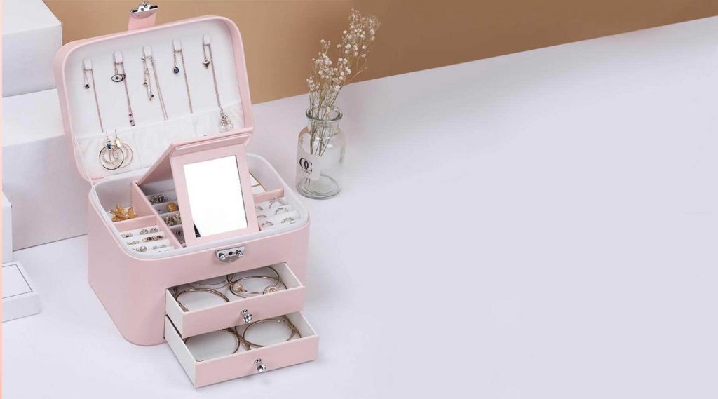 La boîte à bijoux avec miroir est la solution idéale à ce problème. Disponible en différentes tailles, elle s’adapte parfaitement à n’importe quelle collection de bijoux. Vous en trouverez habillée de cuir, faites en bois et aussi en verre. Elles sont composées de compartiments qui permettent de ranger tous les types de bijoux que vous avez. Vous pourrez y suspendre les colliers ainsi que les pendentifs sur leurs crochets. Les bagues disposent d’emplacements en velours pour les placées séparément une par une tout comme vos boucles d’oreilles. Et pour finir, elles sont souvent dotées de tiroirs pour ranger vos bracelets rigides qui prennent généralement plus de place.